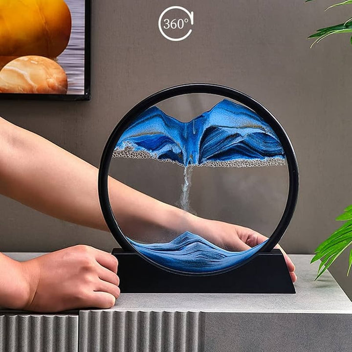 The intricate designs formed by the flowing sand within the lamp can resemble natural landscapes, abstract art, or geometric patterns. These lamps are designed to provide a calming and meditative atmosphere, making them popular for use in homes, offices, and other living spaces. The combination of moving sand and gentle illumination creates a unique and visually stimulating decorative piece.