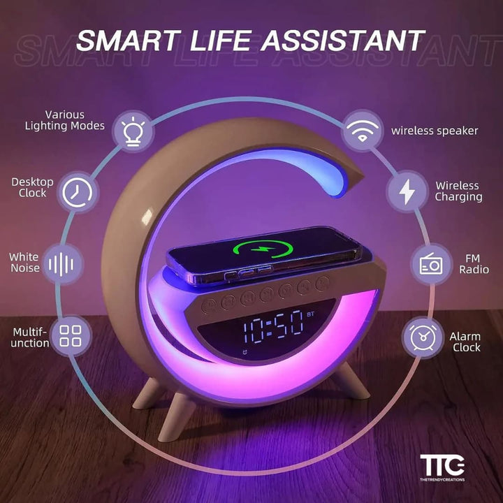 G Lamp Speaker With Digital Clock, RGB Multifunction Wireless Charger